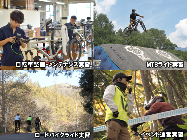スポーツバイシクル学科は、ロードバイクやMTB等スポーツバイクの整備・メンテナンスをはじめ、サイクリングやライド、イベント運営、MTBフィールド整備など、自転車を安全に楽しく乗ってもらうための技術や知識を学ぶ、自転車の専門学校です。